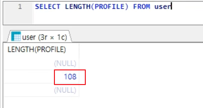 profile 컬럼은 정확하게 64 byte만 들어가므로 (파일명이기 때문에) 길이를 108로 설정할 수 있다.