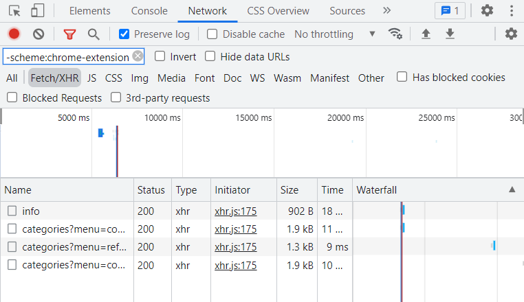 한 두개면 모를까 실제 요청한 xhr 개수보다 더 많은 요청이 쌓인다. 사용하는 확장 프로그램 개수가 많아서 그런 것 같다.