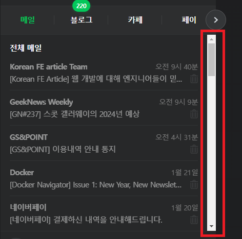 그러다보니 놓치기 쉬운 부분이 있는데 바로 스크롤바다.