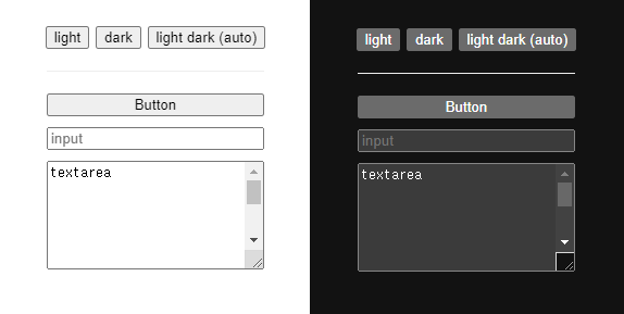 <!-- ↑ light dark 두 값을 모두 넣으면 브라우저 기본 설정에 따라 자동으로 변경된다 -->